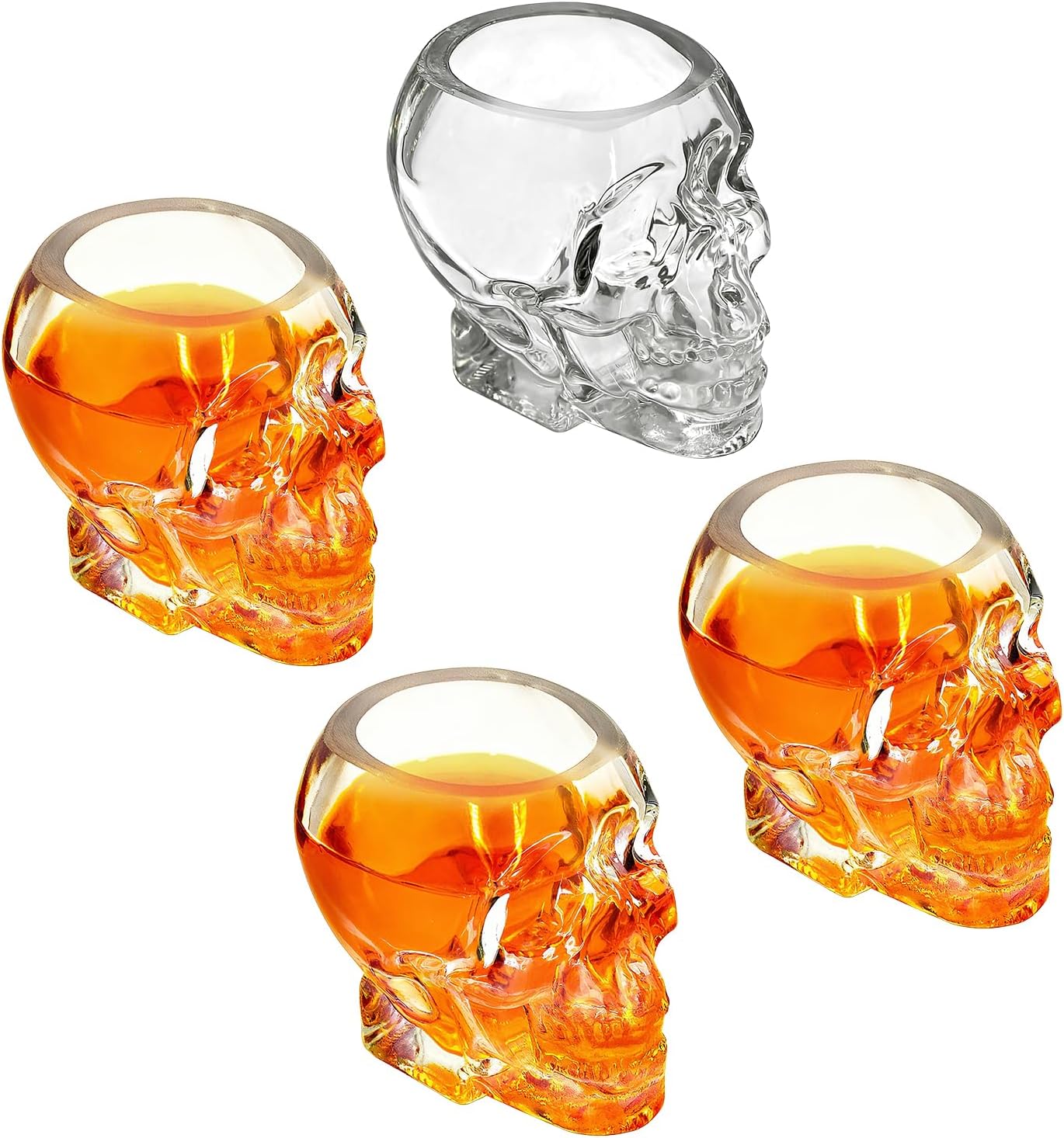 Spooky 3D Skull Design for Eye-Catching Appeal 3.3oz shot glasses with detailed skull-shaped rims and hollow eye sockets, creating a dramatic 3D effect. Clear glass construction showcases liquor colors while adding macabre charm to any occasion.
