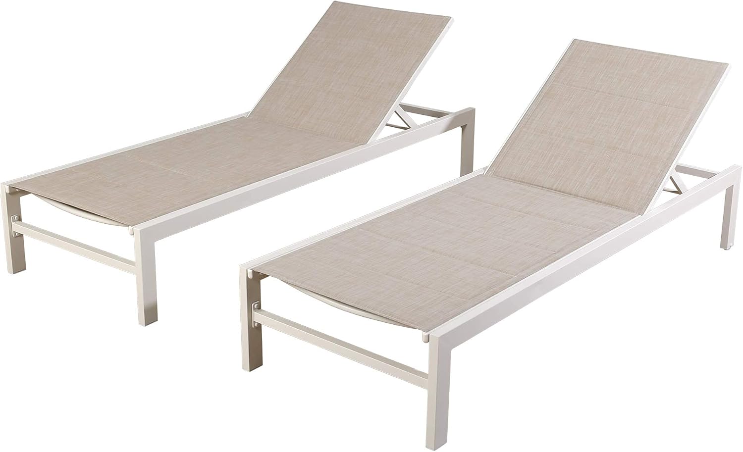 Our patio chaise lounges are constructed from premium full aluminum which is rustproof and sturdy, it can support up to 250lbs. Featured with breathable textilene, the mesh fabric is soft and comfortable so that you will not feel ache even after long-time sitting. What’s more, the adjustable backrest with 5 positions allows you to sit up, lean back or lay down completely, meet the various requirement of back height. The lounge chairs will provide long-lasting service, bring you years of enjoyment. You can put the reclining chairs by its wheels in any corner of the house. Good choice for taking a rest or entertainment. Lying down to eliminate a day of fatigue!