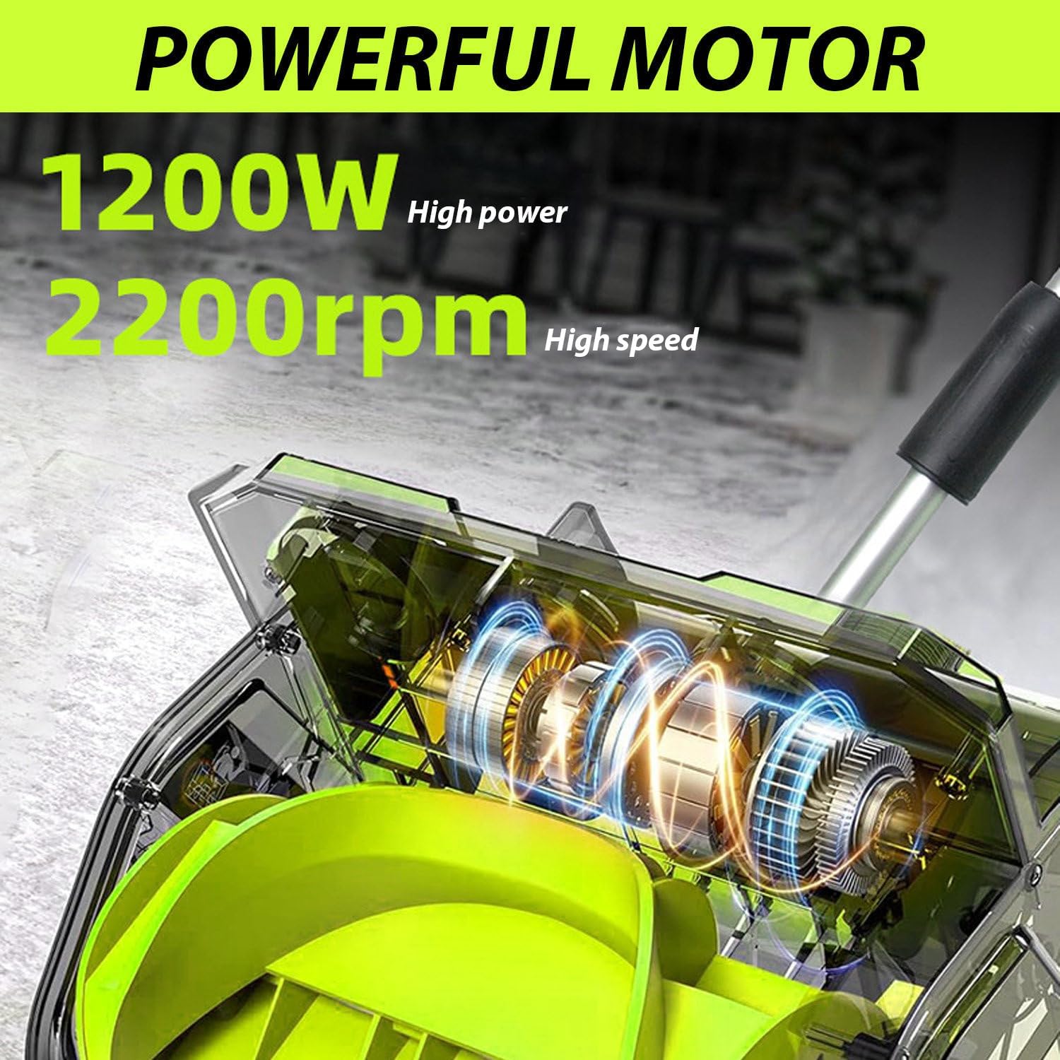 No more tangled wires or interruptions while clearing snow. Our cordless electric snow blower is designed for efficiency and ease of use, featuring a powerful battery for long-lasting performance. Simply recharge the battery after use and be ready for the next snowfall. **Key Benefits:** 1. **Removable Battery:** Enjoy the flexibility of charging your snow blower anywhere, making it convenient to keep it powered up and ready for action. 2. **Convenient Carrying Handle:** Easily transport your snow blower to any location, whether it's your driveway, sidewalk, or backyard, ensuring you can tackle snow removal whenever needed. 3. **Quick-Release Knobs:** The included knobs allow for fast removal of the operating lever, simplifying maintenance and enhancing your experience. **Specifications:** - Product Name: Cordless Electric Snow Blower - Voltage: 20V - Power: 1200W - Cleaning Width: 32cm - Cleaning Depth: 16cm - Snow Throwing Distance: Up to 8m - Idle Speed: 2200rpm - Weight: 4.2kg - Adjustable Snow Throwing Direction **Package Includes:** - Cordless Electric Snow Blower x1 - Battery x1 - Charger x1 **Customer Support:** If you have any questions or suggestions about the product, feel free to email us. We are committed to responding within 24 hours to ensure your satisfaction. Elevate your winter experience with our efficient and user-friendly cordless electric snow blower, perfect for residential use and designed to make snow removal hassle-free.