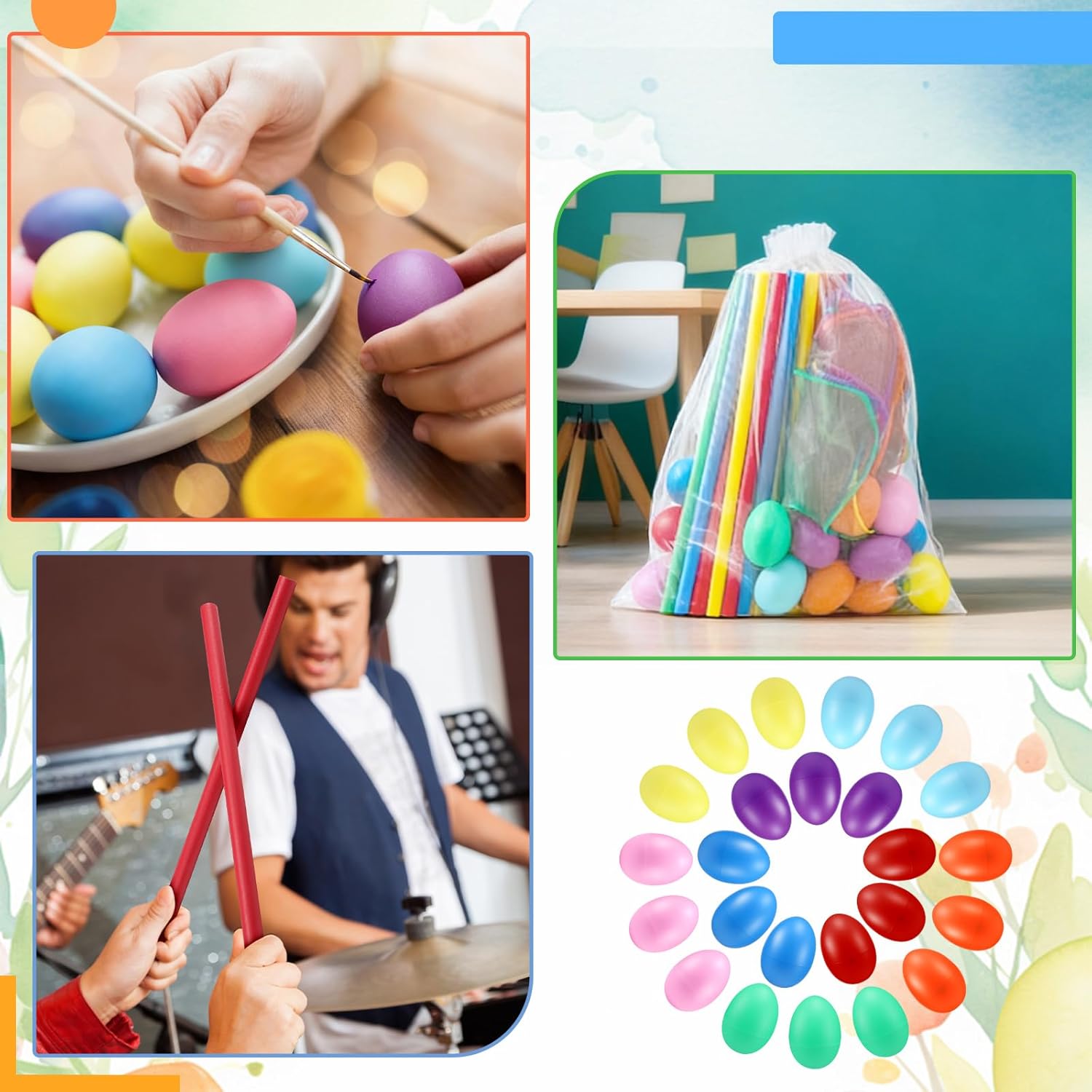 Features: Interactive Design: The graceful charm of scarf, rhythm stick, and crisp sound effects of egg shaking create a multi-dimensional interaction, making interactions with different numbers of people and scenes more atmospheric and participatory. Combining functional expansion with creative design: The shaking egg frosted surface supports DIY painting and can be paired with scarf colors to create personalized creations. At the same time, rhythm practice breaks the functional limitations of a single instrument or dance prop, achieving "play, learn, and create" Specifications: Material: fabric, plastic, wood Color: multicolor Size: Colorful scarves: 24 x 24 inches Egg shakers: 2.4 x 1.6 inches Rhythm sticks: 12 x 0.5 inches Mesh bags: 12 x 16 inches Package includes: 24 x Colorful scarves 24 x Egg shakers24 24 x Rhythm sticks 3 x Mesh bags Notes: Manual measurement, please allow slight errors on size. The color may exist a slight difference due to different screen displays.