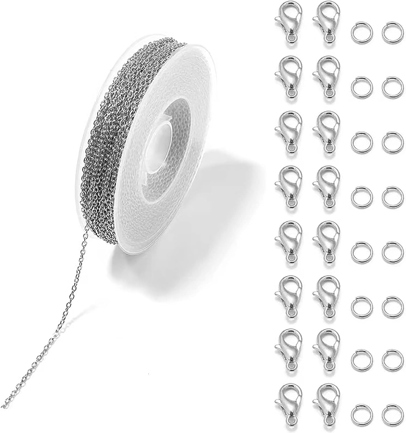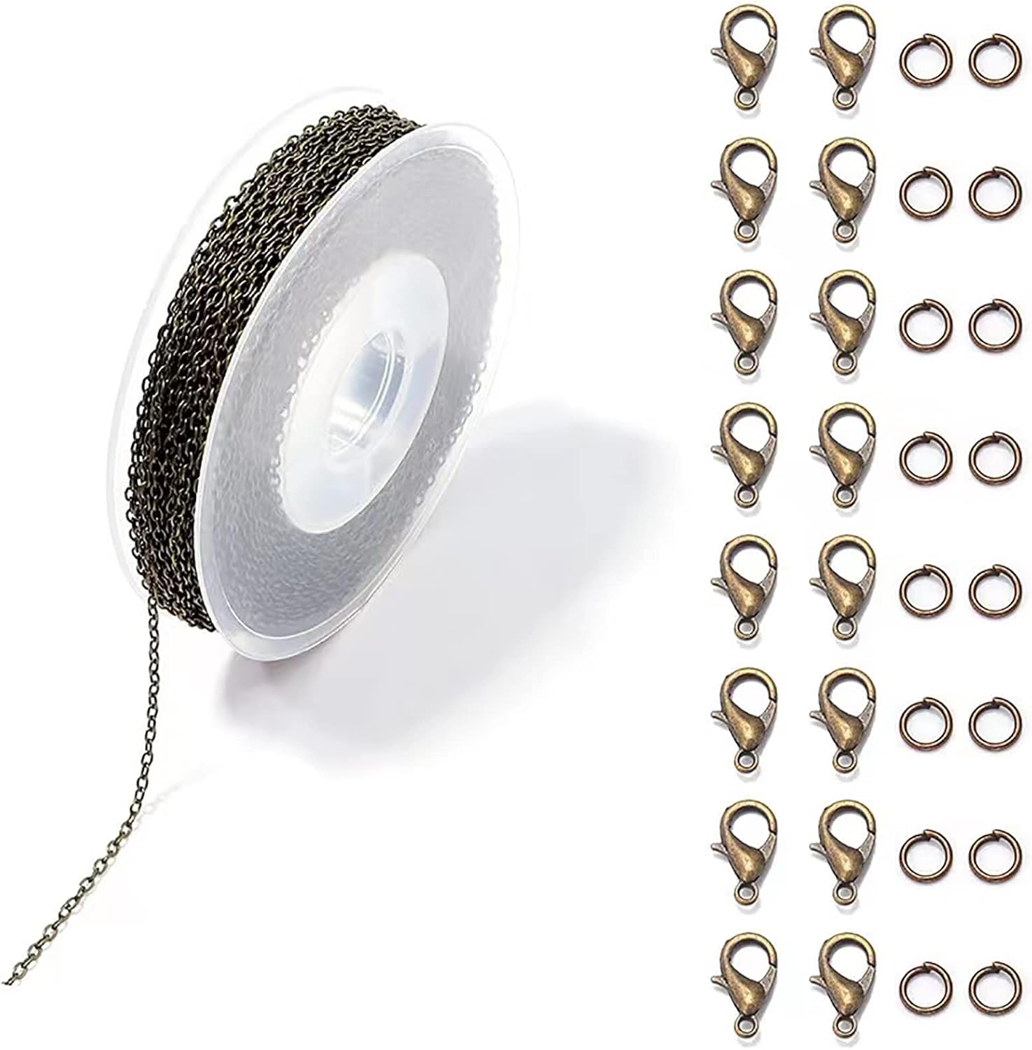 Specifications:Package: Including 7 rolls Cable Chains + 70 Lobster Clasps + 210 Open Jump Rings.Chain Link Size: about 2mm long, 3mm wide. Link Chain Necklace Length: about 3 Meters/ 9.84 Feet/ roll, 68.88 feet in total.Lobster Clasps Size: about 12mm long, 6mm wide. Material: Iron.Colors: silver, white K, antique bronze, antique copper, rose gold, gun black, gold.Beatutiful and Shinny:The link chains have a lighter weight than normal chains, and because it is a twisted chain, there will be more reflective parts.Simple and Elegant:The jewelry chain necklace is suitable for banquet, date, shopping, party.Wide Application:Perfect for mens and womens jewelry making decorative chains, also good for necklace, bracelet, anklets, body chain jewelry, layer chain, extender chain, etc. Also can be used for jewelry beadings repairing and repair personalized jewelry crafts. The length allows you to make many items.Kindly Note: Color might be slightly different from the picture because of different display device.