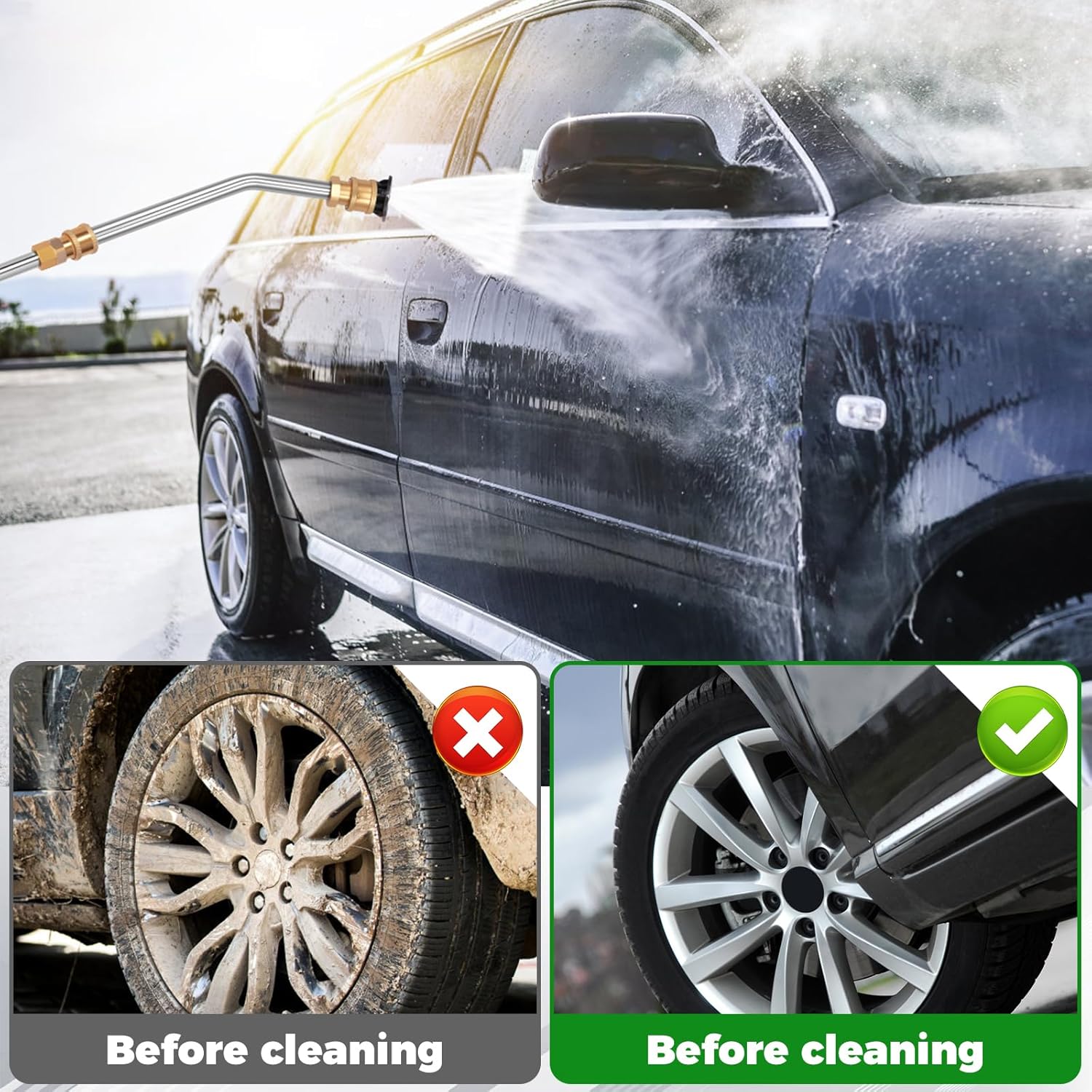 Parts List:1 × Nozzle Straight Rod5 × Extension Rods1 × 30° Curved Rod1 × U Shape Rods1 × 90° Rod8 × WashersDescription:The extension pole can effectively increase the operating radius of the water jet. When cleaning vehicles, with a larger coverage area, it can reduce the frequency of moving the water spray lance back and forth, which significantly improves the cleaning efficiency and saves time and effortFeature:In the process of vehicle cleaning, it is often necessary to focus on specific parts of the cleaning. High pressure car wash water jet lance head extension lever, can help car owners more accurate control of the water jet head direction and position, to enhance the cleaning target and effectSpecification:Texture: Brass + Stainless SteelSize:Nozzle Straight Rod: 40cm long Head: 1/4 quick plug male Head: M14 × 1.590° Rod: 17cm Head: 1/4 quick plug male + 1/4 quick plug female U Shape Pole: 15cm Head: 1/4 quick connect male + 1/4 quick connect female 30° Curved Pole: 19cmExtension Pole: 40cmCentre Pole: 37cm Head: M14 × 1.5Color: SilverNote:1. There may be slight differences between the picture and the actual color of the commodity. We will try our best to show you the exact color.2. Please allow slight dimension difference due to manual measurement.