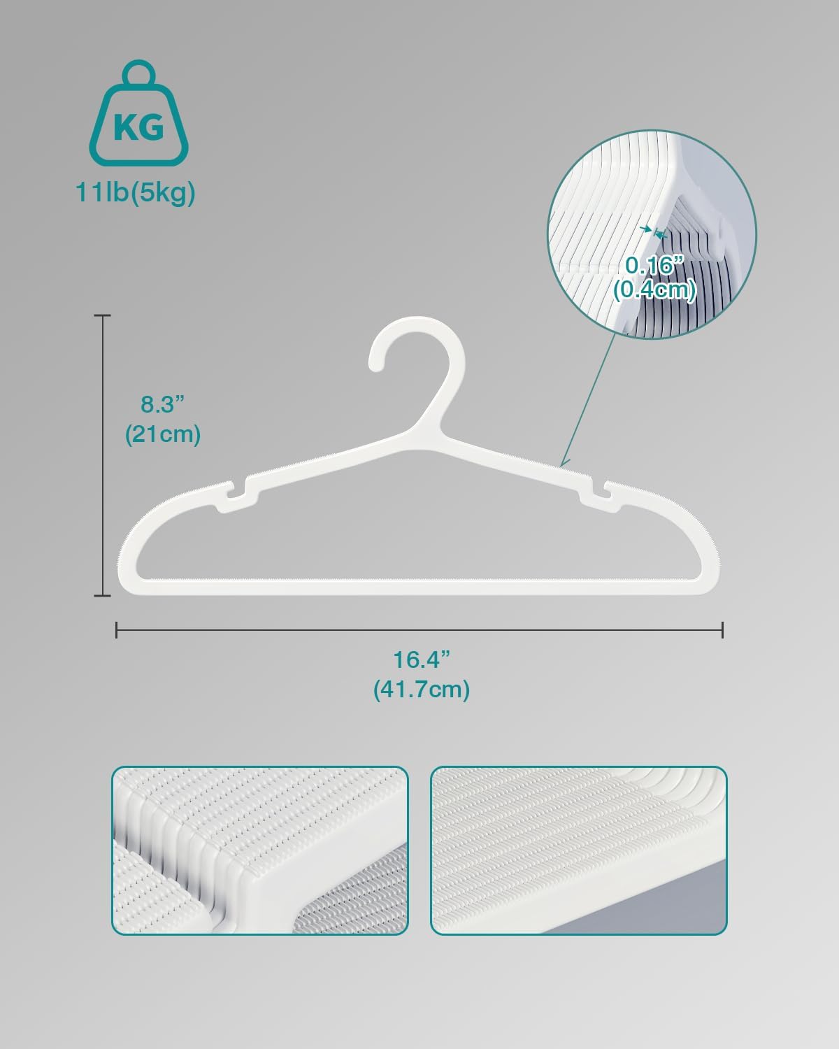 ABHENG 80 Pack Clothes Hangers, Non Slip Plastic Coat Hangers, Space Saving Hangers, Heavy Duty, Hanging Dry Wet Clothes, 16.4" x 8.3", White, UAPY0580W