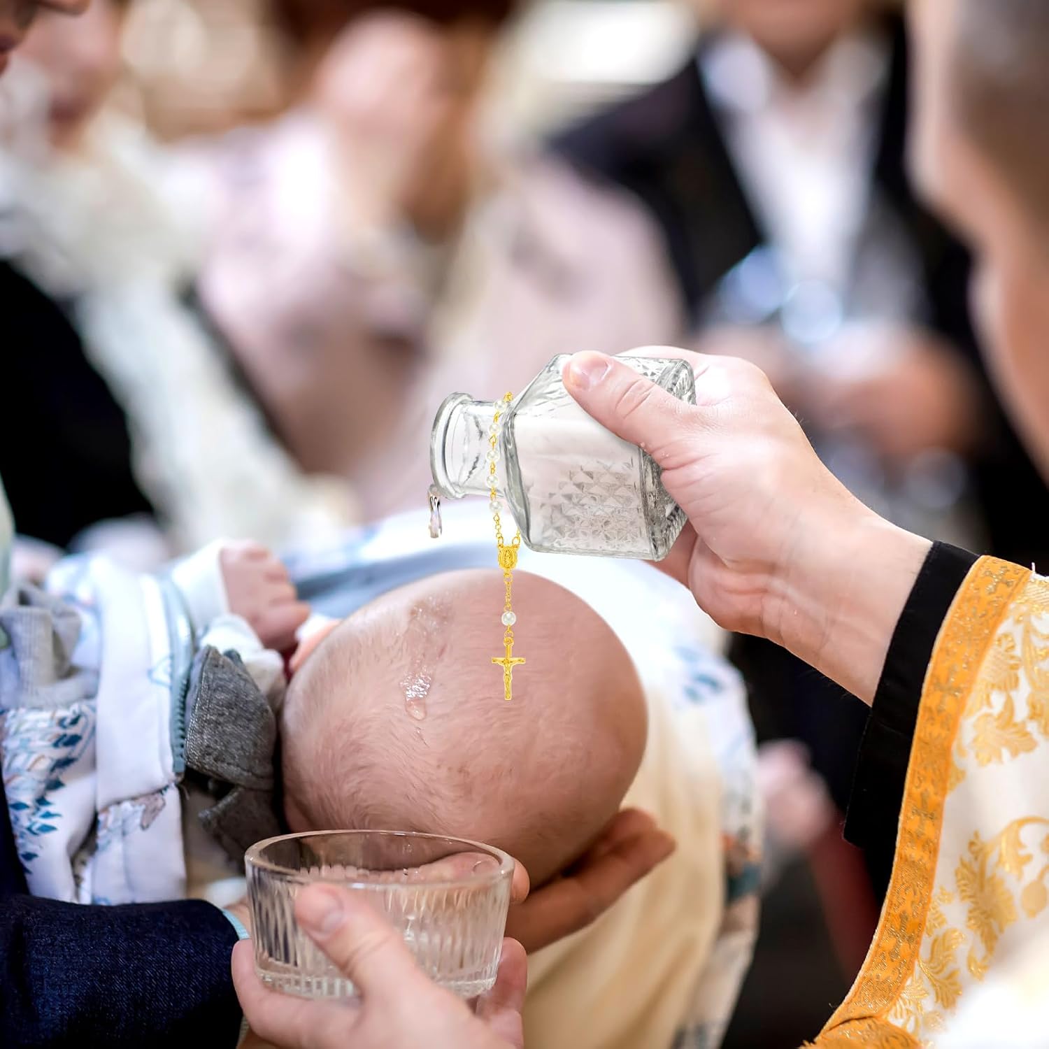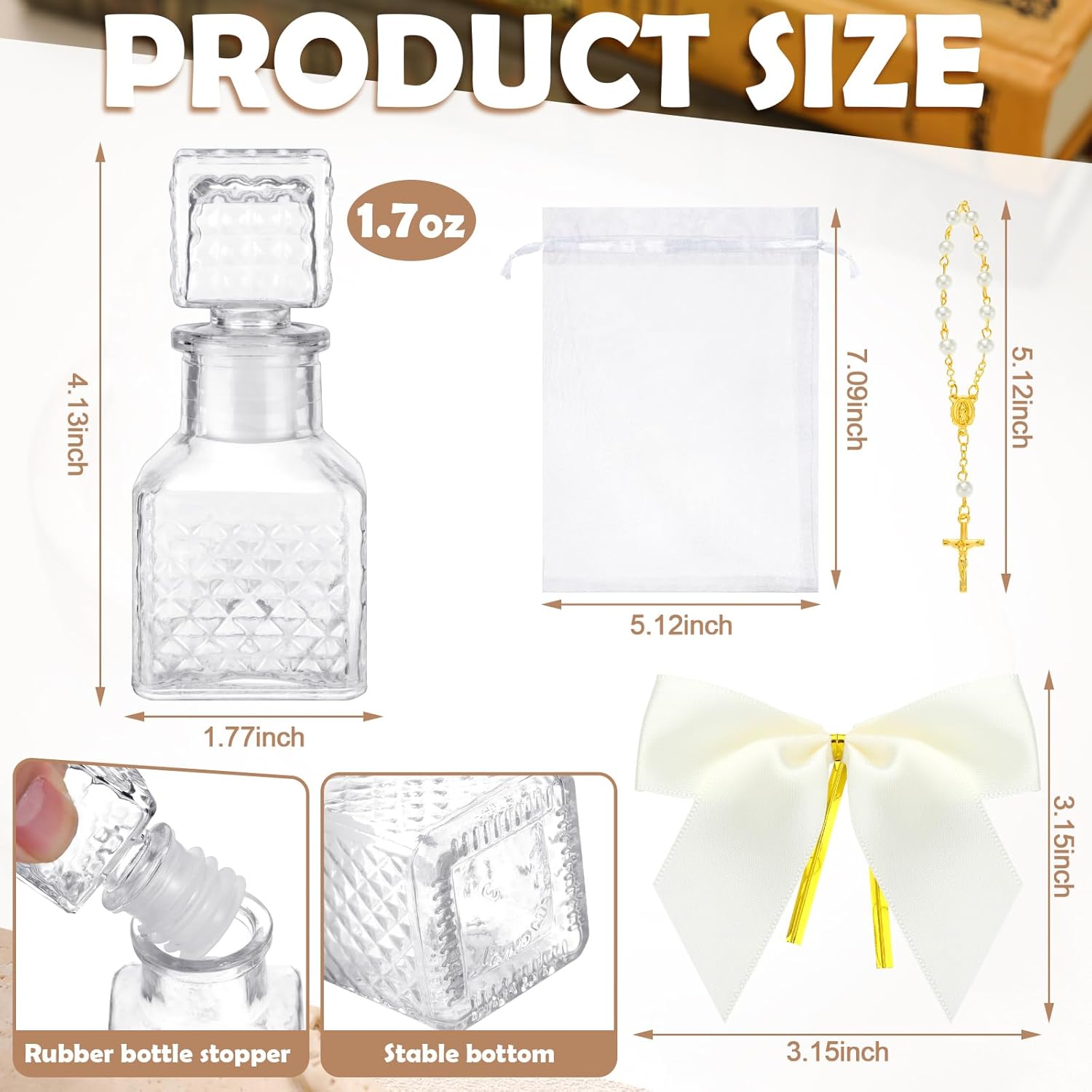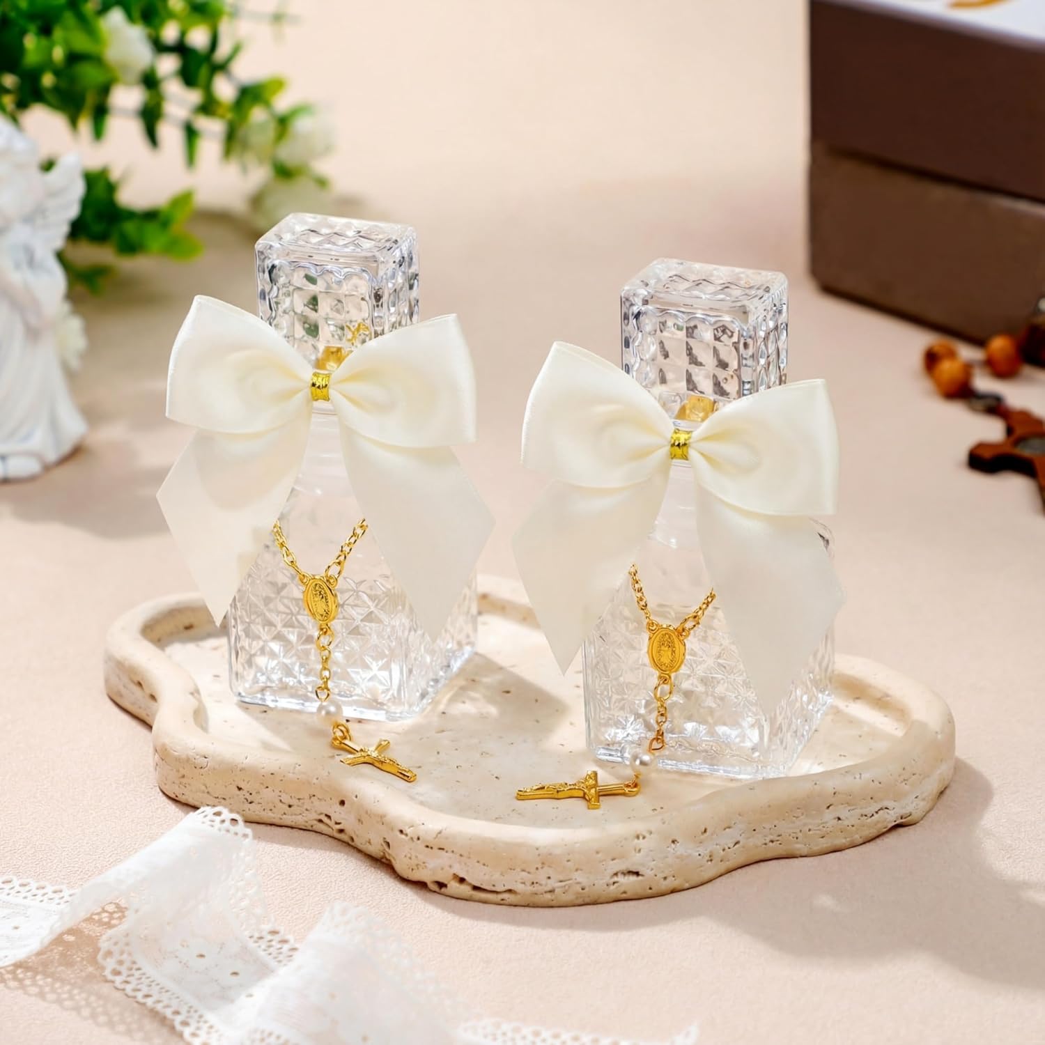 | Included Components | 24 x Glass holy water bottle, 24 x Golden cross prayer beads, 30 x Bows, 30 x Organza bags |