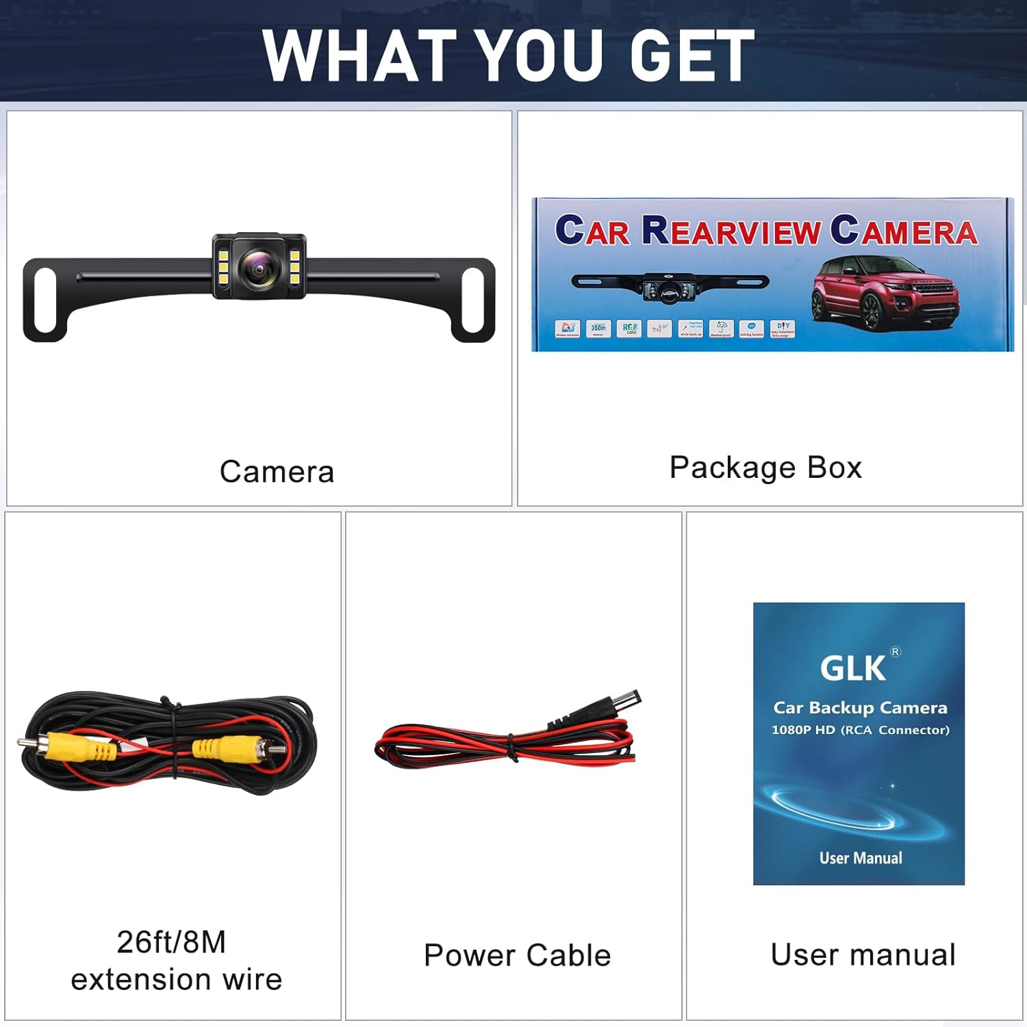 | BuiltIn Media | Power Cable, RCA Video Cable, User manual, backup camera |