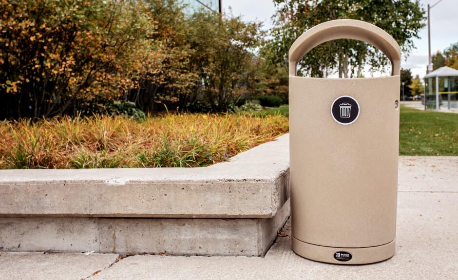 The EURO container redefines outdoor waste collection with high-end aesthetics and unbeatable durability. Inspired by modern European architecture, its curved silhouette and integrated canopy protect contents from the elements while offering a premium look ideal for urban centers, campuses, parks, and commercial plazas. Built from heavy-duty double-wall plastic, the Euro resists damage, rust, and impact—even in tough environments. Front door access ensures ergonomic servicing, while optional locking and 3D stream labels add function and flexibility. Whether used as a standalone unit or part of a multi-bin setup, the Euro delivers performance, presence, and polish in every detail.