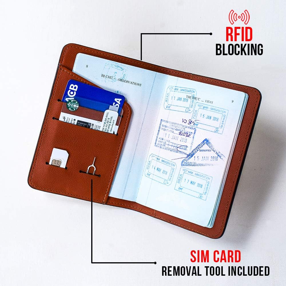 Enjoy your trip!For travelers, travel is meant to be cheerful so keeping organized is one of the most important thing for a trip.An organized passport cover will keep all your passports, air tickets, credit cards, cash in one place.Our passport cover is the perfect choice for a traveler and travel gift ideas!RFID Blocking Leather passport holder wallet comes with RFID Blocking feature. Feel secure knowing that wherever you are in the world, your personal information cannot be scanned by electronic pickpocketing thieves. Why Choose Our Case Brand?For the material, we find the high quality leather to produce passport covers with an beautiful quality print that makes travel more funFor the style, professional design team with creative ideas to get together to create your every passport book.For the test, we test every passport case before shipment that making sure every customer receives the great intact passport case.Personalized Passport holder are unisex and great for men, women and kids. Such as passport holder for women, passport cover for men and passport holder for kids. Also good gifts for your friend, family, and the best gifts for travelers.