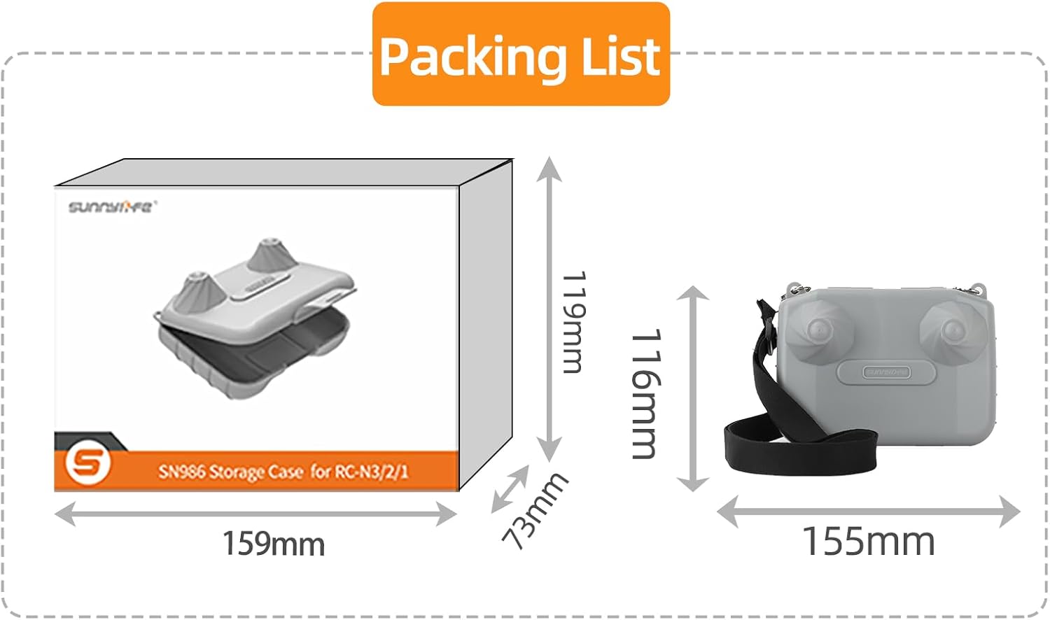 Designed specifically for RC-N3/2/1, it is convenient to take and put the remote control, making outdoor shooting more worry-free. Comes with a lanyard, you can start shooting immediately after putting the remote control on your back, freeing your hands and traveling easily. Precise mold opening, effective fit. Fits the shape and structure of the remote control. One-click fit, eliminating the need to repeatedly disassemble and assemble the joystick. Packing list: Controller storage box * 1 (does not include the remote control and other accessories for demonstration) Specifications: Product name: Universal portable storage box with lanyard Applicable models: RC-N3/2/1 Material: Plastic Product weight: 92g Packing weight: 154g Packing size: 159*119*73mm