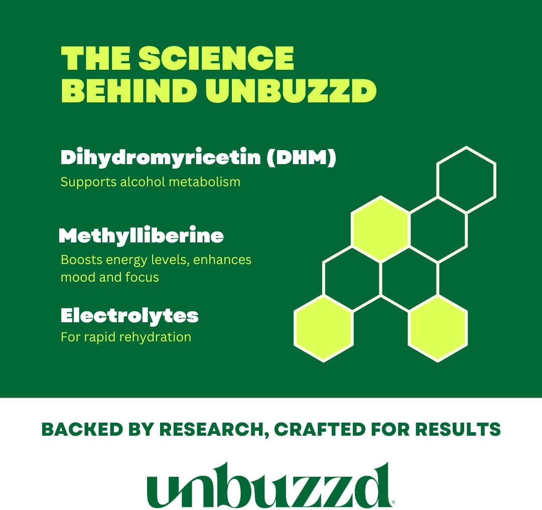 unbuzzd Clear-Eyed Citrus 18-Pack Powder Sticks are Celly Nutrition's groundbreaking wellness supplement designed to help you recover more quickly. This cutting-edge formulation combines vitamins, minerals, and extracts including DHM, green tea extract, and milk thistle. Own Now and What's Next as you quickly feel the benefits. With more hydrating electrolytes than leading sports drinks, stay hydrated and energized. Crafted by a world-class R&D team and manufactured in the USA, unbuzzd is your go-to solution for swift recovery and sustained wellness. Own now and what's next with unbuzzd.