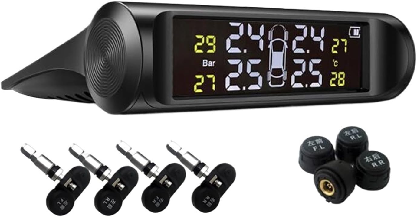 Features:1, solar technology, all-weather uninterrupted life2, dual power supply, powerful power supply, even without light can also use usb power supply3, four tire tire pressure side of the same, worry-free4, intelligent chip control, accurate real-time prompt5, automatic switching machine, energy saving6, multi-vehicle use, multi-environment work7 aviation aluminum, strong seal padsNote:1, the first time when the sensor and the receiver has been paired, change the sensor or receiver only need to re-paired2, the monitor sleep state to detect the vibration signal automatically boot, display tire pressure, temperature data, stop more than 10 minutes after the automatic sleep3, press the "-" key Compatible With 3 seconds to turn on / off4, the tire running more than 20km, the sensor pressure, temperature automatically update the data5, the alarm description: When the tire pressure exceeds the set safe range or leakage, the corresponding tire position on the display pressure and alarm symbols flashing, while the buzzer issued a continuous bi bi bi sound prompt;Package included:Receiver *1Sensor *4\''Voltage : 5VSpecial Features : Tire Pressure AlarmMaterial Type : absItem Weight : 0.4Item Height : 1Item Width : 1Item Length : 1External Testing Certification : ceModel Name : T18Origin : Mainland ChinaItem Type : Alarm Systems & SecurityWelcome to our store, here not only have the products you need, but also our warm service and professional advice, looking forward to meeting you!