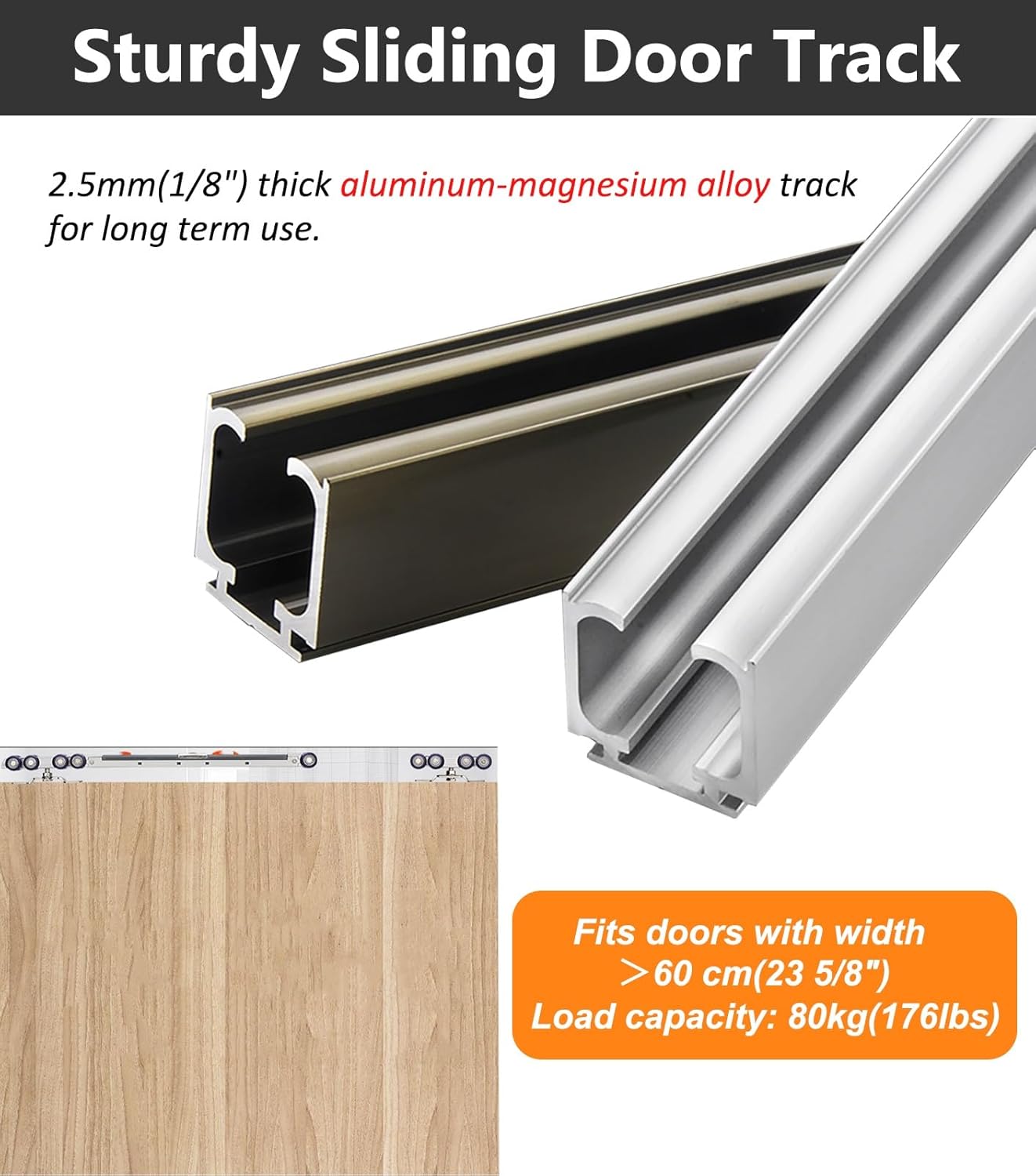 Smooth, silent, and sturdy – our sliding barn door hardware kit is built for long-lasting performance and effortless operation in every room.Specification:- Applicable Door Thickness: >3cm(2")- Applicable Door Width: >60 cm(23 5/8")- Track Color: Silver-White, Champagne, Black- Track Material: Aluminum-magnesium Alloy- Roller Assembly Material: Iron Material + Nylon- Number of Pulley Blocks: 1 Pair- Installation Method: Top Mounting- Customizable Length: Yes- Cutting Available: Yes- Due to logistics and transportation length limitations, orders exceeding 1.5m(4.9ft) will require cutting for shipping.Package Contents:- 1 x Sliding Door Hardware Kit( Mounting Screws Included )Feature:- To prevent collisions and reduce noise during pulling.- Aluminum-magnesium alloy sliding door rail track kit is strong and built to last.- Pulley has strong load-bearing capacity and glides smoothly.- With all necessary accessories for easy installation.- Track length can be cut to fit your needs.- For single, double, and four-door setups.Notes:- Due to different display and different light, there may be some color difference between the picture and the product.- Due to manual measurement, there is a 1-2 cm error, specific to the actual size shall prevail.