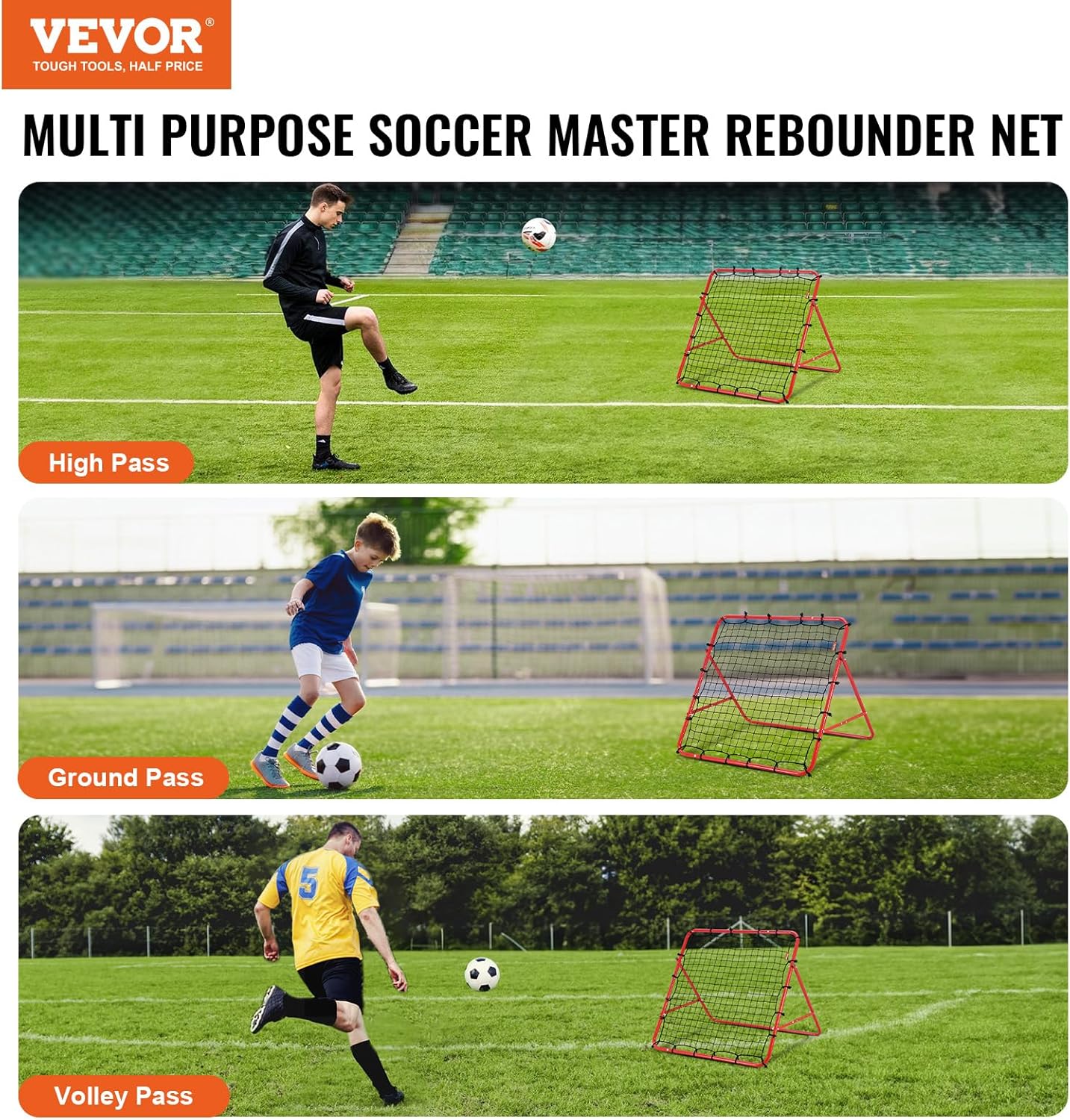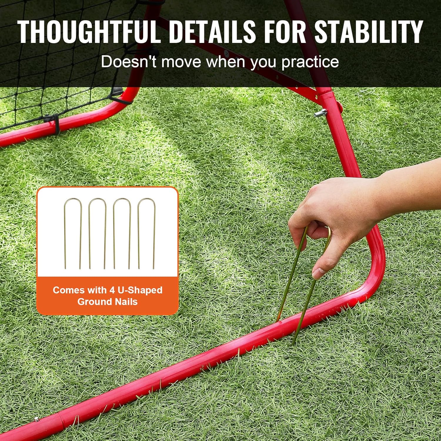 Soccer Training Rebound NetThis soccer rebound net features adjustable angles and reinforced netting, with Iron frame, sandbags, and ground stakes for stable rebounds. Ideal for ground passes, volleys, and ball control drills, helping players efficiently improve skills at home or on the field. Key FeaturesSolid FrameHigh-strength iron keeps the rebound net stable. Weighted BaseSandbags add stability, avoiding unwanted shifts. Ground AnchorsStakes secure the net firmly into the ground. Versatile Training ScenesThis soccer equipment net works well for solo practice, partner drills, or group training, providing consistent ball returns to help improve ball touch, passing accuracy, and reaction skills. Fits Various SpacesThe ball rebounder balances effective training with space efficiency, fitting easily in a backyard or field while supporting smooth passes, shots, and ball reception. Easy SetupClearly labeled components allow quick assembly in minutes, so your bounce back net can be set up easily and ready for training right away. SpecificationItem Model Number: DKS-372bRebound Area: 42.52 x 42.91 in / 1080 x 1090 mmMaterial: Q195 Iron Pipe + PE + PolyesterProduct Weight: 14.44 lb / 6.55 kgProduct Size: 47.05 x 44.69 x 55.91 in / 1195 x 1135 x 1420mm Package Content1 x Soccer Rebounder Net8 x U-Shaped Ground Stakes26 x Ball Bungees3 x Sandbags2 x Star-Head Screws4 x Long Bolts with Plastic Knobs1 x Target Lacing Cord1 x User Manual